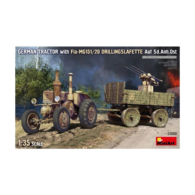 Parametry produktu  MiniArt 1:35 German Tractor w/ Fla-MG151/20 DRILLINGSLAFETTE Auf Sd.Anh.Ost