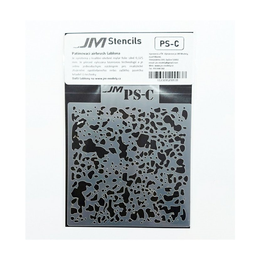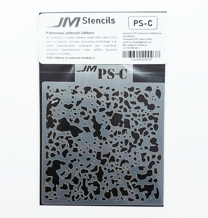 Stříkací patinovací šablona z kvalitní 0,125mm silné plastové folie pro dokonalé provedení zašlého povrchu letadla, nebo vojenské techniky. Je přesně vyřezána laserovou technologií. Rozměr: 95 x 95 mm