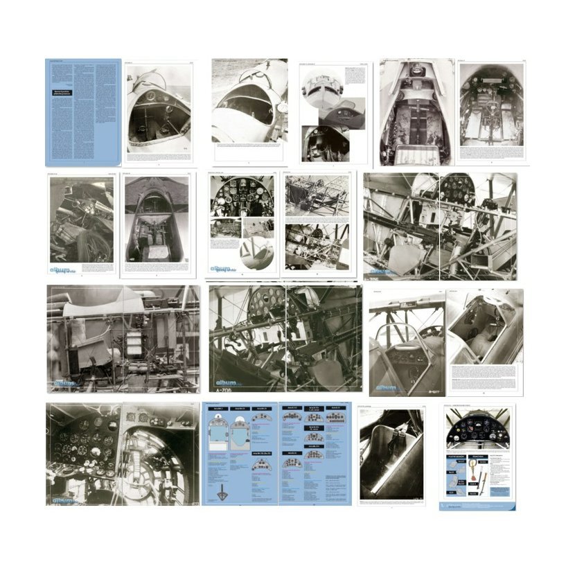 Počet fotografií: 44, 2 barevné rekonstrukce, náčrty tvarů sedaček, kresby pilotních pák, 10 schémat rozložení přístrojů na palubních deskách