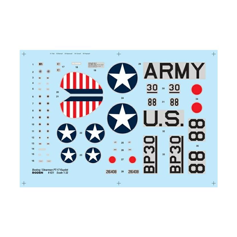 Parametry produktu  Roden 1:32 Boeing-Stearman PT-17 Kaydet (2x camo)