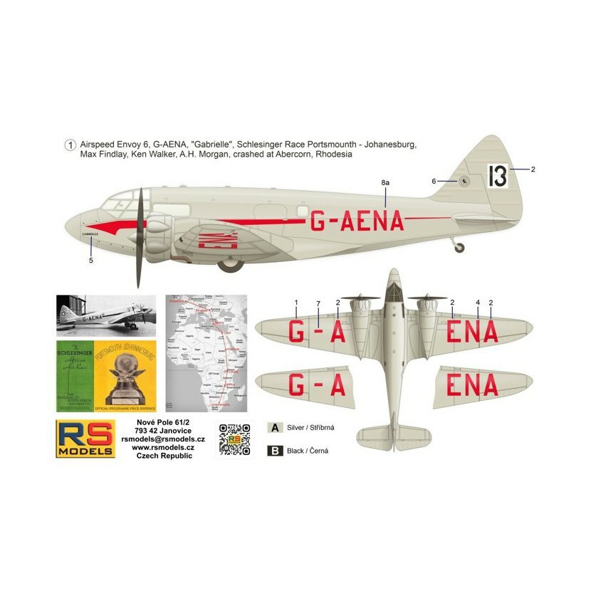 Parametry produktu  RS models 1:72 Airspeed Envoy "Gabrielle" (Schlesinger Trophy)