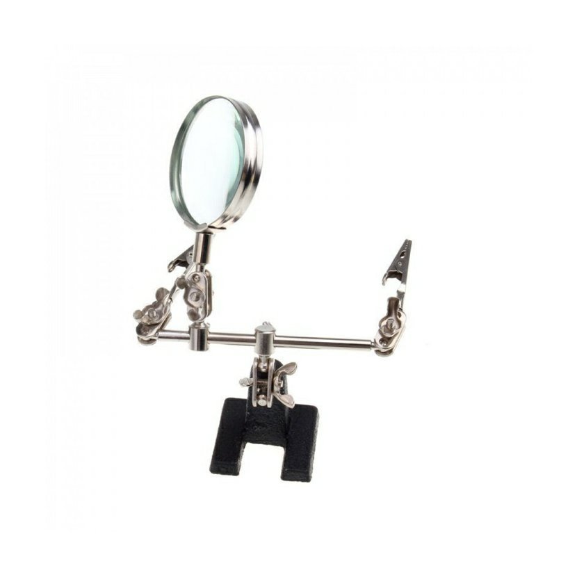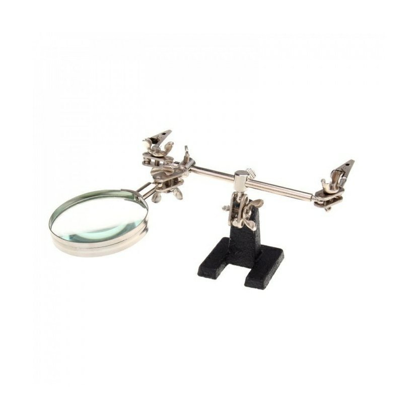 stolní stojánek se dvěma svorkami a lupou (průměr 60mm)